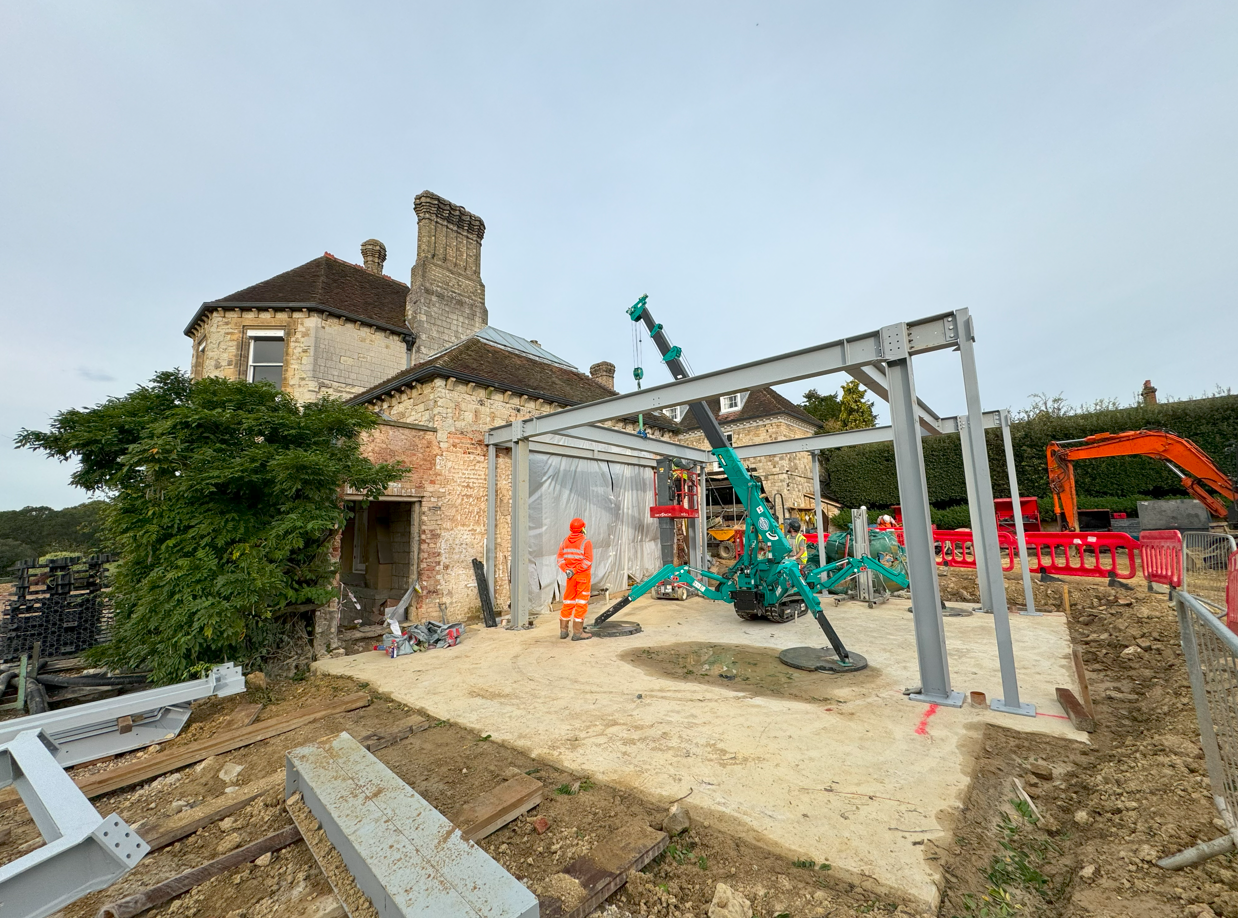 Precise steelwork construction to ensure durability and aesthetic appeal for the orangery and gym.